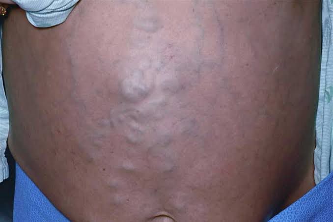Caput medusae is the name for a cluster of swollen veins in your abdomen. The swelling usually appears around the belly button, and the veins branch out from a central point. They are typically painless, but they are a symptom of circulatory problems that are often related to liver disease.