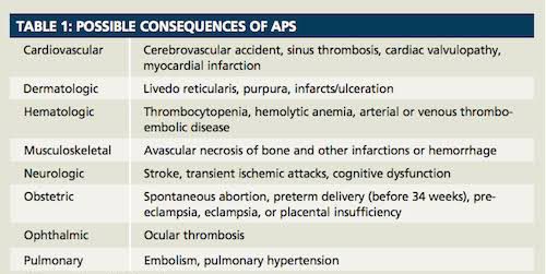 These are the possible consequences of Antiphospholipid syndrome