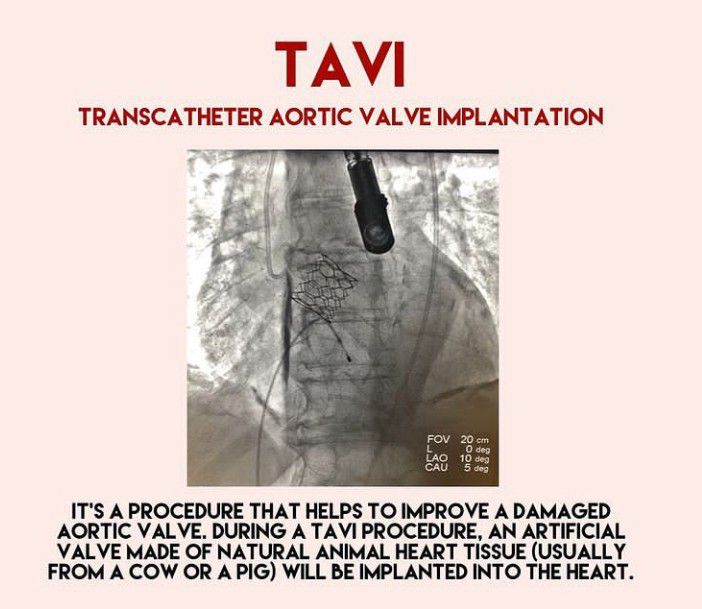 Transcatheter aortic valve implantation (TAVI) is a minimally invasive heart procedure to replace a thickened aortic valve that can't fully open (aortic valve stenosis). The aortic valve is located between the left lower heart chamber (left ventricle) and the body's main artery (aorta). If the valve doesn't open correctly, blood flow from the heart to the body is reduced. TAVI can help restore blood flow and reduce the signs and symptoms of aortic valve stenosis — such as chest pain, shortness of breath, fainting and fatigue. TAVI may be an option for people who are at risk of complications from surgical aortic valve replacement (open-heart surgery). The decision to treat aortic stenosis with TAVI is made after a discussion with a team of heart and heart surgery specialists, who work together to determine the best treatment option for you. Transcatheter aortic valve replacement may also be called transcatheter aortic valve replacement (TAVR).