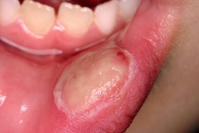 Mouth ulcers are easy to spot. They usually appear as sores on your lips, gums, tongue, inner cheeks or roof of the mouth. While red around the edges, mouth ulcers are typically white, yellow or gray in the center. You may only develop one ulcer, or there might be more. Other symptoms could include: Swelling around the ulcer. Increased soreness when brushing your teeth. Pain that worsens when eating spicy, salty or sour foods.