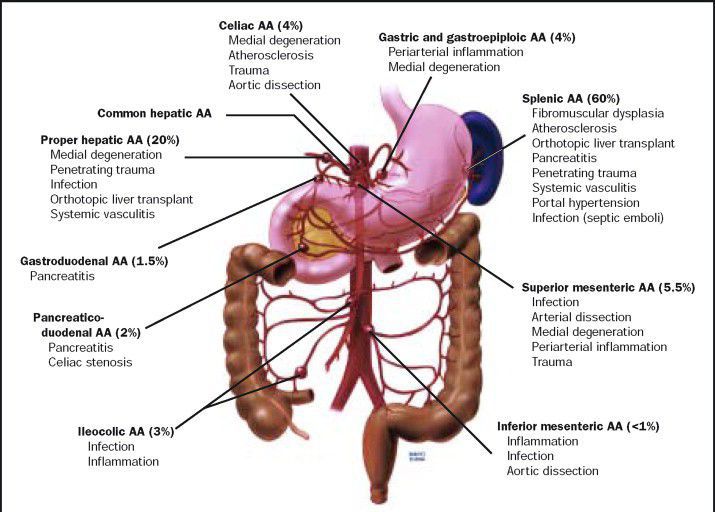 What are symptoms of a splenic artery aneurysm to rupture? Patients with a splenic artery aneurysm before rupture are fairly asymptomatic; vague epigastric pain, left upper quadrant pain, and left shoulder pain are among the most common complaints. Radiologic studies for the diagnosis of splenic artery aneurysm include plain abdominal film, ultrasound, and angiography.