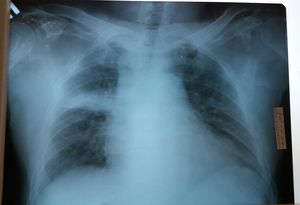 Low KV radiograph >> TGA, right middle lobe consolidation ?