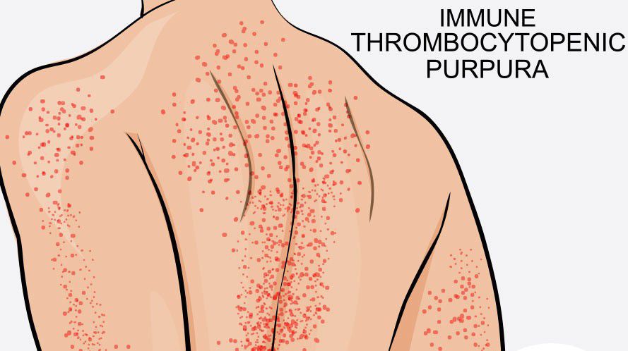 What are the symptoms of idiopathic thrombocytopenic purpura? The purple color of the skin after blood has "leaked" Tiny red dots under the skin that are a result of very small bleeds. Nosebleeds. Bleeding in the mouth and/or in and around the gums. Heavy menstrual periods. Blood in the vomit, urine, or stool.