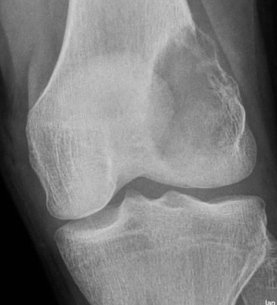 OSSEOUS METASTASES: š“ can appear non-aggressive or aggressive š“ lung cancer most common primary overall š“ breast cancer in women, often osteoblastic metastases š“ prostate in men most common cause of osteoblastic metastases š“ distribution matches red marrow, rare beyond elbow and knees š“ fractures that should make you think underlying lesion such as metastasis: -- subtrochanteric femur or humerus transverse fracture -- lesser trochanter avulsion fracture in adult š“ beware diffuse increased bone density in extensive osteosclerotic metastases - easy to miss š“ expansile "blow out" lytic metastases; think renal cell carcinoma or thyroid carcinoma š“ absent pedicle "winking owl sign" on frontal spine radiographs in lytic posterior element involvement.