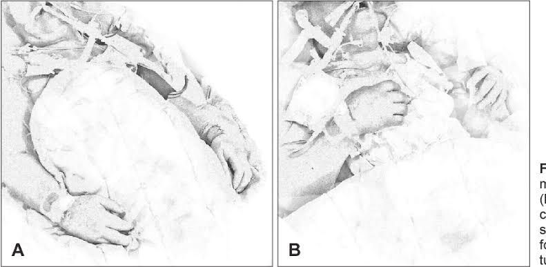 In the diagnosis of brain death, it is generally accepted that respiratory function has to be absent, however, spinal reflexes can be preserved. We presented a patient who showed a complex movements of upper limbs (Lazarus' sign) and respiratory like movement during the apnea test for the determination of brain death. This 72-year old female admitted to our hospital in a semicomatous state due to severe subarachnoid and ventricular hemorrhage. Her conscious level suddenly deteriorated to deep coma because of second hemorrhage on the same day. She became apnea and no brain stem reflexes elicited. Three days later, electrophysiological examination revealed a flat recording of electroencephalography, absence of auditory evoked potentials and no response of blink reflex. Short latency somatosensory evoked potentials obtained by median nerve stimulation showed the presence of Erb's N9 and spinal N13-P 13 components originating from cervical dorsal horn, however, the scalp P13 generated by cervico-medullary junction was absent. This patient fulfilled all other criteria for brain death. Four days after, an apnea test was performed. Spontaneous movements of both upper limbs were observed starting between 7 and 8 minutes after disconnecting the intubation tube from the ventilator. Both arms flexed at the elbow, abducted and elevated from the bed. Then, both hands were brought up to chest. Wrist and fingers were in a neutral position (Lazarus' sign). Simultaneously, shallow and irregular respiration like movements were recognized. These movements ceased immediately after connecting the respirator. These two types of movements were reproducible except for in the final test. Blood pressure gradually decreased, and cardiac arrest occurred one hour after.