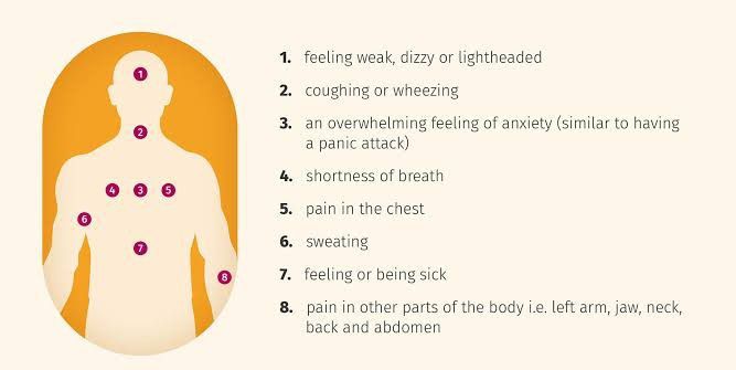 During a heart attack, tissue in the heart muscle dies due to lack of blood flow through the heart's arteries. Angina symptoms include chest pain and discomfort. The chest pain or discomfort may feel like: Burning. ... Other symptoms of angina include: Dizziness. Fatigue. Nausea. Shortness of breath. Sweating.
