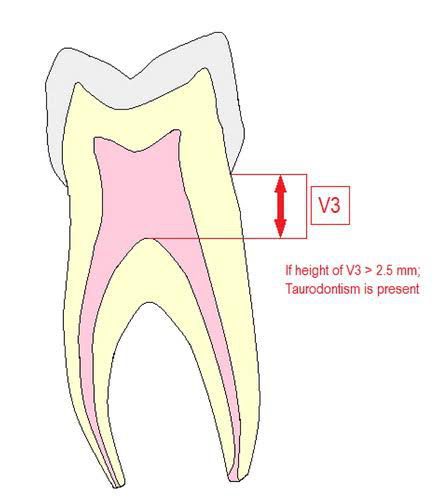Taurodontism is a disorder of tooth development and occurs most commonly in permanent molar teeth. It refers to an elongation of the pulp chamber of the tooth, which can cause the tooth to lie deep in the jaw (aveolar process). At this time the cause of Taurodontism is unknown.