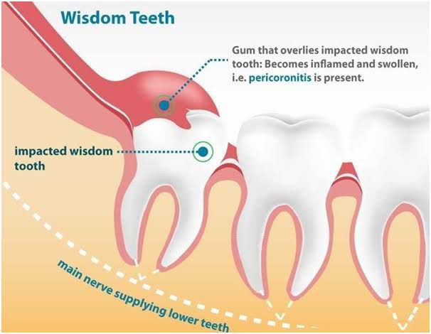 What is Pericoronitis? Pericoronitis is swelling and infection of the gum tissue around the wisdom teeth, the third and final set of molars that usually appear in your late teens or early 20s. It is most common around the lower wisdom teeth.