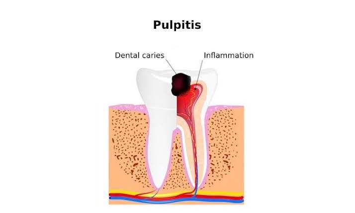 Toothache and sensitivity are the main symptoms of pulpitis. The pain you feel usually varies depending on the stage of the inflammation. Symptoms of reversible pulpitis include: No pain when your dentist taps the tooth. No sensitivity to heat. Sensitivity to cold or sweets that goes away quickly. People often describe this as a sharp pain. With irreversible pulpitis, you may experience: Pain when your dentist taps the tooth. Sensitivity to heat, cold or sweets that lasts more than a few seconds. This can be a throbbing, aching or sharp pain. If pulp necrosis occurs and the nerve tissue dies, you may not have any sensitivity to heat, cold or sweets. But your tooth may still hurt when your dentist taps it.