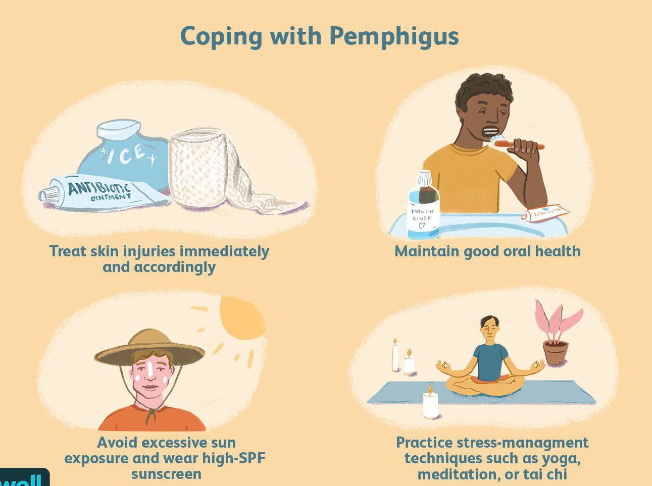 How is pemphigus vulgaris treated? Better oral health care. Blistering may affect the health of your mouth. Prednisone and steroid creams may be prescribed to treat the inflammation. Immune suppressants. Plasmapheresis or intravenous immunoglobulin.