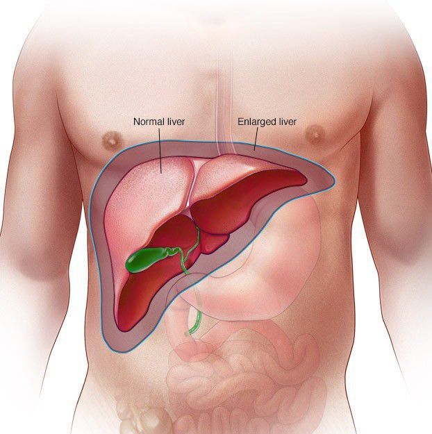 An enlarged liver is one that's bigger than normal. The medical term is hepatomegaly (hep-uh-toe-MEG-uh-le). Rather than a disease, an enlarged liver is a sign of an underlying problem, such as liver disease, congestive heart failure or cancer. Treatment involves identifying and controlling the cause of the condition.