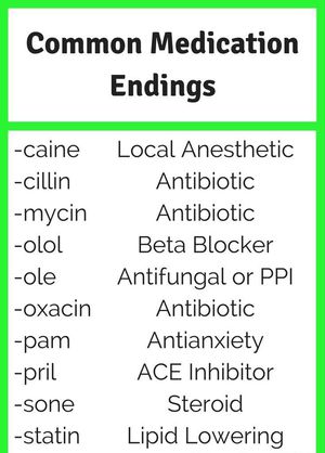 Common Medication Endings