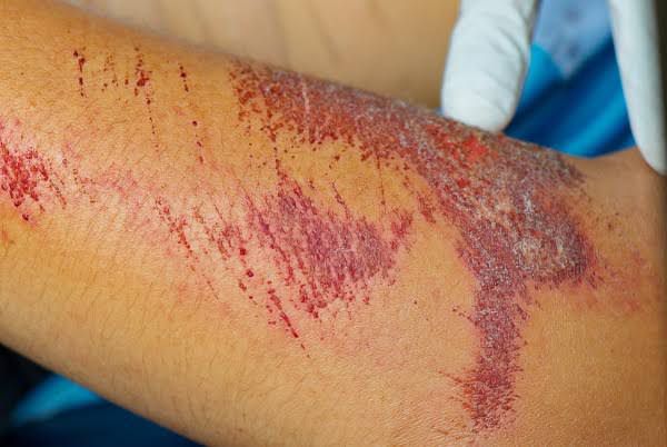 caused by the skin rubbing against a rough surface. It may be called a scrape or a graze. When an abrasion is caused by the skin sliding across hard ground, it may be called road rash. Abrasions are very common injuries. They can range from mild to severe. Abrasions are most likely to occur on the: elbows knees shins ankles upper extremities Abrasions can be painful, since they sometimes expose many of the skin’s nerve endings. However, they don’t typically cause much bleeding. Most abrasions can be treated at home. Abrasions aren’t usually as serious as laceration or incision wounds. These are cuts that typically affect deeper skin layers. They may cause intense bleeding and require medical care.