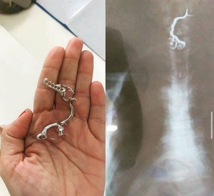 Here you can see a swallowed dental prosthesis in the CXR. Don't forget to remove yours before sleeping!