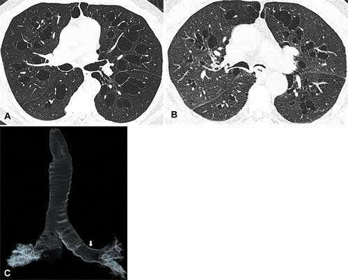 Symptoms include cough, sputum, wheeze and recurrent pulmonary infections, classically seen in the paediatric age group with selective bronchiectasis of the mid-order bronchioles. The literature describing diagnosis of Williams–Campbell syndrome in adult population is very sparse.