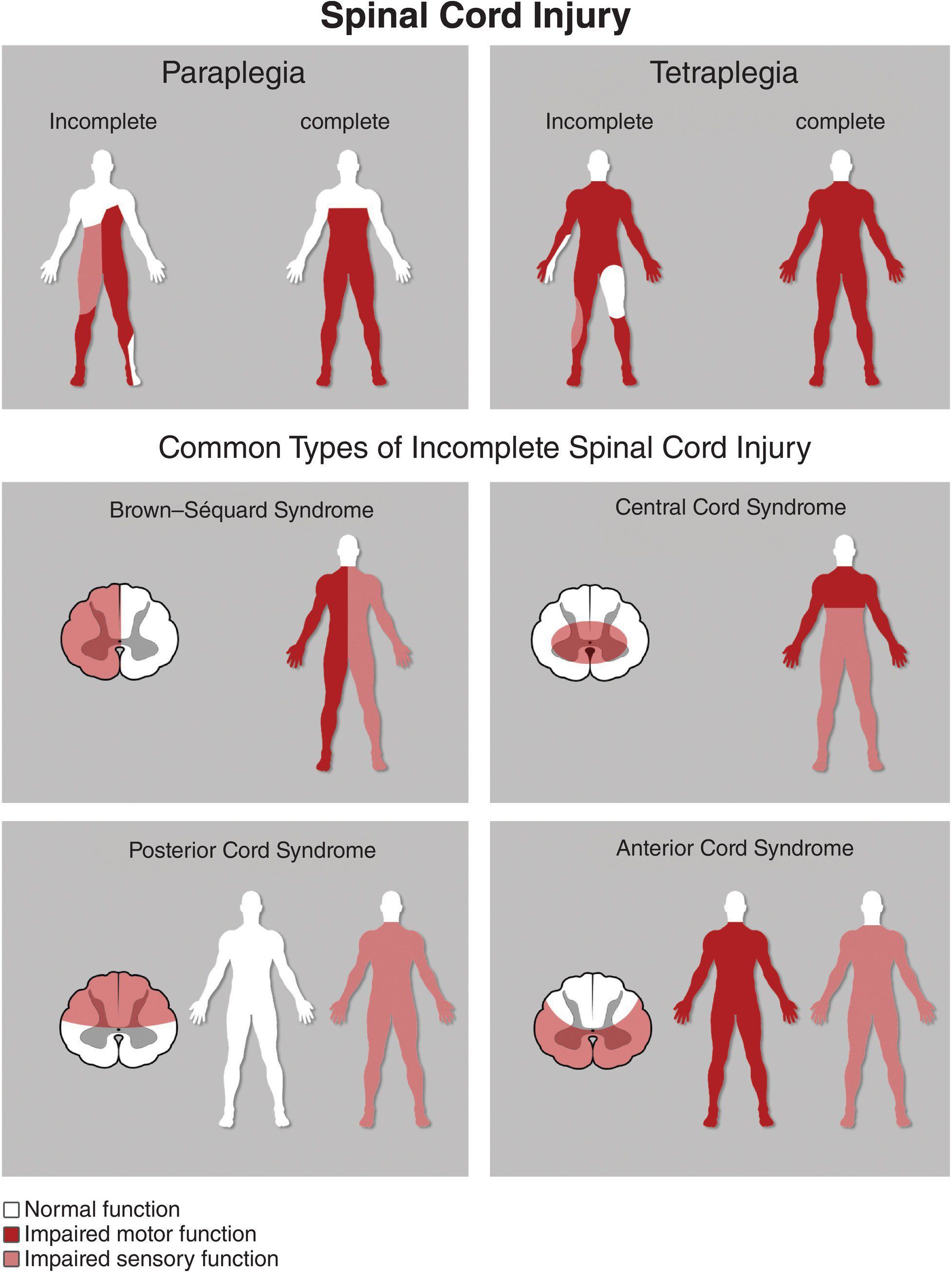 Common types of incomplete spinal cord injury and respective impaired functions Source: https://twitter.com/Innov_Medicine/status/1568456138970263554
