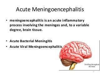 The meninges are the layers of thin tissue that cover your brain. If these tissues become infected, it's called meningitis. When your brain becomes inflamed or infected, the problem is called encephalitis. If both the meninges and the brain are infected, the condition is called meningoencephalitis.