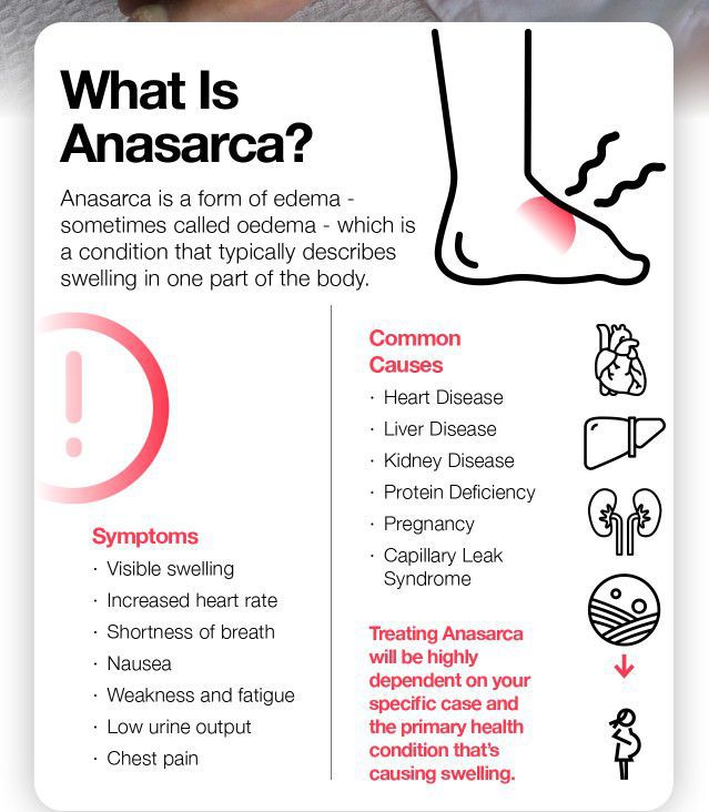 Treatment of Anasarca Limit salt intake to reduce the swelling associated with anasarca. Gently massage your body in the direction of the heart. Exercise to pump out excess fluid, back to the heart. Talk to your doctor first if you have a heart problem. Increase your protein and fiber intake.