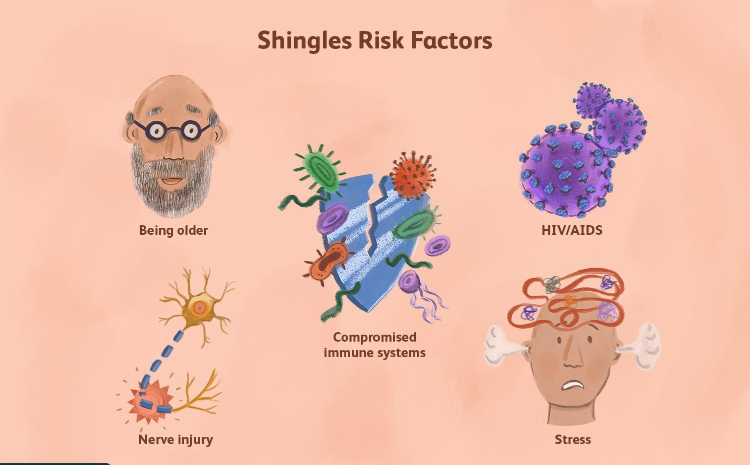 Shingles is caused by varicella zoster virus (VZV), the same virus that causes chickenpox. After a person recovers from chickenpox, the virus stays dormant (inactive) in their body. The virus can reactivate later, causing shingles. Most people who develop shingles have only one episode during their lifetime.