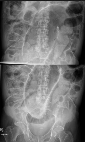 85 yr old male presents to the emergency room abdominal distention and obstipation. He has had severe bowel obstructions in the past. Physical examination reveals peritonitis. Abdominal radiographs are ordered as part of the patient's work up.* *What is the Diagnosis?*