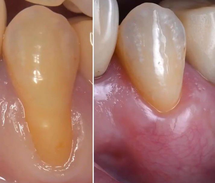 Here is the before and after of a periodontal surgery with 1 year recovery gap. By: https://www.instagram.com/reel/CifzfQtqhHp/?igshid=YmMyMTA2M2Y=