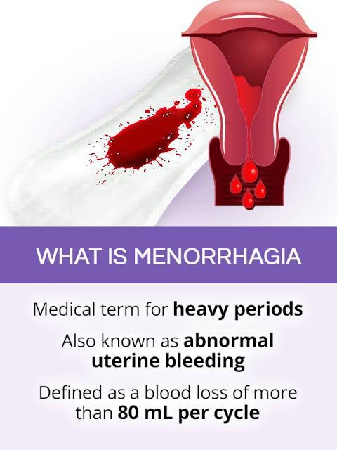 Menorrhagia is menstrual bleeding that lasts more than 7 days. It can also be bleeding that is very heavy. How do you know if you have heavy bleeding? If you need to change your tampon or pad after less than 2 hours or you pass clots the size of a quarter or larger, that is heavy bleeding.