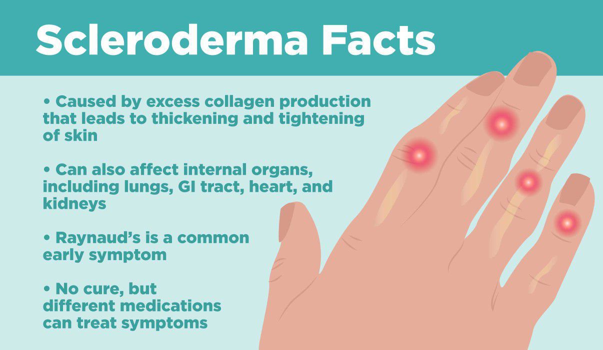Scleroderma is caused by the immune system attacking the connective tissue under the skin and around internal organs and blood vessels. This causes scarring and thickening of the tissue in these areas. There are several different types of scleroderma that can vary in severity.