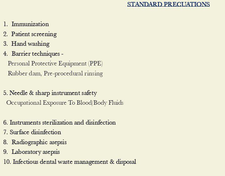 Here are some standard precautions for infection control.