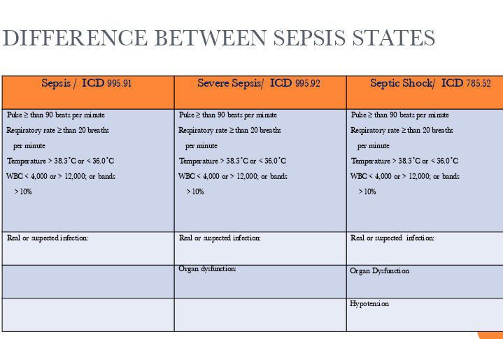 Here you can appreciate different states of sepsis.