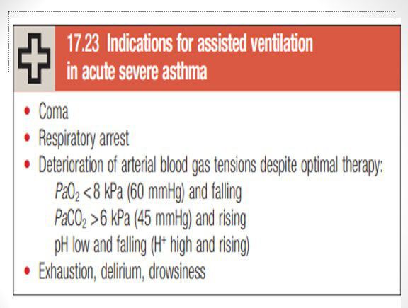 These are the indications for assisted ventilation in acute severe asthma.