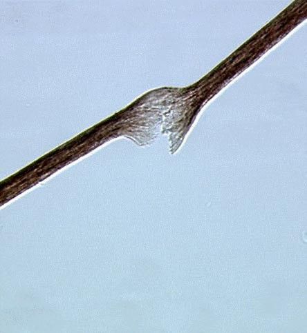 Trichorrhexis nodosa is a defect in the hair shaft characterized by thickening or weak points (nodes) that cause the hair to break off easily. This group of conditions contributes to the appearance of hair loss, lack of growth, and damaged-looking hair.