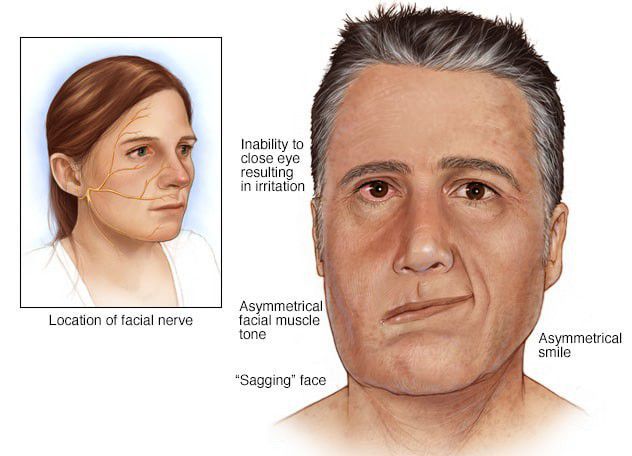 Bell's palsy is a condition that causes sudden weakness in the muscles on one side of the face. In most cases, the weakness is temporary and significantly improves over weeks. The weakness makes half of the face appear to droop. Smiles are one-sided, and the eye on the affected side resists closing.