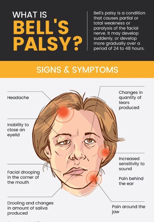 Symptoms Rapid onset of mild weakness to total paralysis on one side of your face — occurring within hours to days. Facial droop and difficulty making facial expressions, such as closing your eye or smiling. Drooling. Pain around the jaw or in or behind your ear on the affected side.
