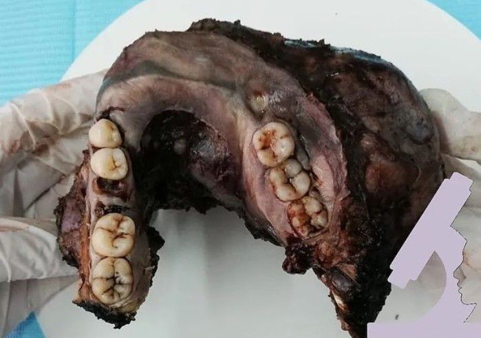 This case reminds us and rectifies the misconception that benign tumors are not dangerous nor life threatening. This is an extensive case of Ameloblastoma in a 34 year old male patient. Of course this huge size developed over years. The fact that the patient was a prisoner might have been a factor in the late intervention. Unfortunately the patient died shortly after the procedure as a result of surgical complications