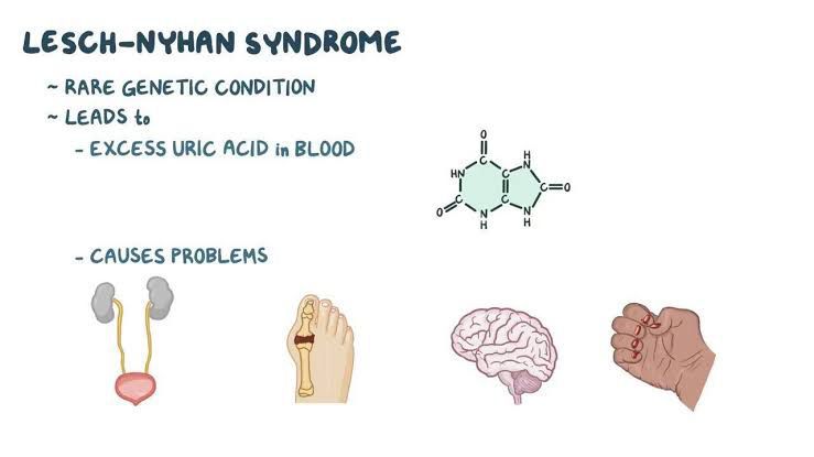 Lesch-Nyhan syndrome (LNS) is a rare congenital (at birth) disorder that affects a child's brain and behavior. A key symptom is engaging in uncontrollable self-injury, including lip and finger biting or head banging. The disease causes a buildup of a natural waste product called uric acid in the body.