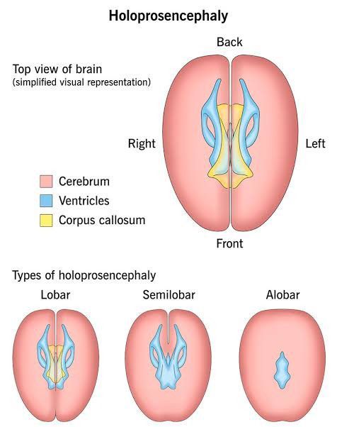 Holoprosencephaly is a disorder caused by the failure of the prosencephalon (the embryonic forebrain) to sufficiently divide into the double lobes of the cerebral hemispheres. The result is a single-lobed brain structure and severe skull and facial defects.