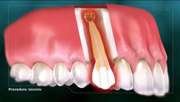 What Is an Apicoectomy? An apicoectomy is a common dental procedure where inflamed gum tissue and the end of the root of your tooth is removed while the top of your tooth is left in place. It's often called a root-end resection because it works on the end (or, tip) of your root called the apex.