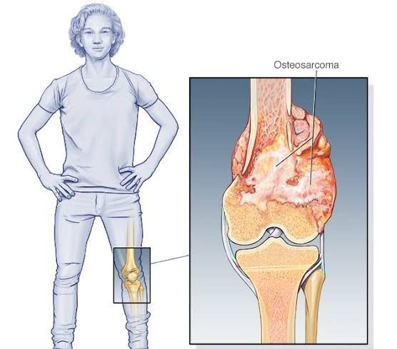 Osteosarcoma is a type of bone cancer that begins in the cells that form bones. Osteosarcoma is most often found in the long bones — more often the legs, but sometimes the arms — but it can start in any bone. In very rare instances, it occurs in soft tissue outside the bone.