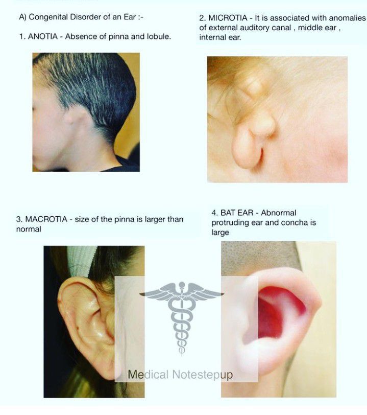 Outer ear pathologies are described well here. By: https://www.instagram.com/p/Ci9Sre2hbDi/?igshid=MjU0Y2ZlMmY=