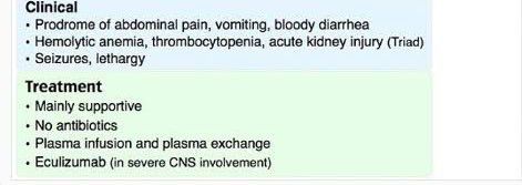 These are the clinical features and treatment of Hemolytic uremic syndrome