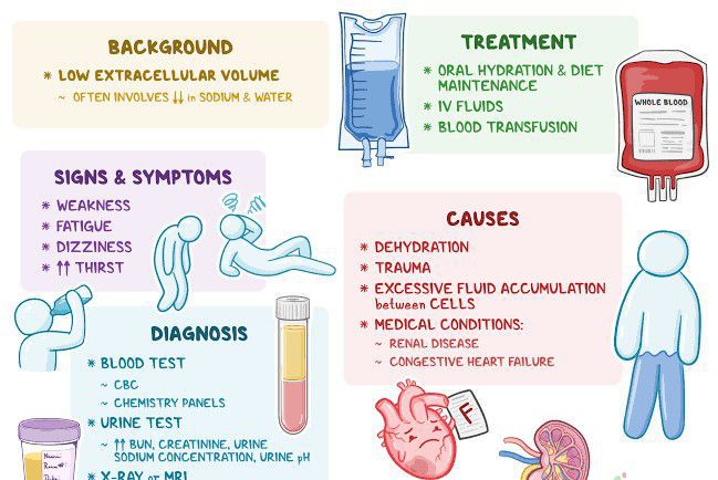 Major blood or fluid loss causes hypovolemic shock. You may be bleeding a lot inside your body, where you can't see it, or outside your body, where you can see an obvious injury. You can also get hypovolemic shock from burns, pancreatitis, or from too much sweating, throwing up or diarrhea.