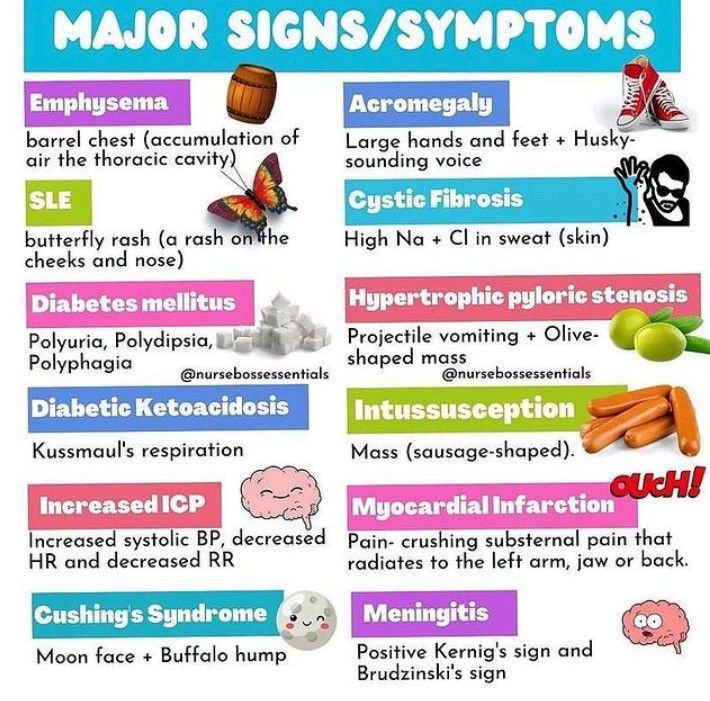 Here is a list of different conditions and their prominent signs and symptoms.