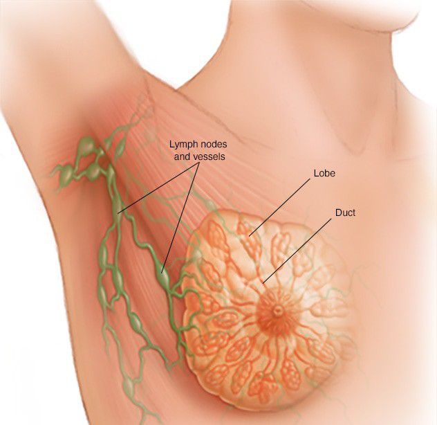 Breast cancer can have a number of symptoms, but the first noticeable symptom is usually a lump or area of thickened breast tissue. Most breast lumps aren't cancerous, but it's always best to have them checked by your doctor. You should also speak to your GP if you notice any of the following: a change in the size or shape of one or both breasts discharge from either of your nipples (which may be streaked with blood) a lump or swelling in either of your armpits dimpling on the skin of your breasts a rash on or around your nipple a change in the appearance of your nipple, such as becoming sunken into your breast Breast pain alone isn't a symptom of breast cancer. Learn more about the symptoms of breast cancer After examining your breasts, your GP may refer you to a specialist breast cancer clinic for further tests. This might include a mammography (breast screening) or a biopsy.
