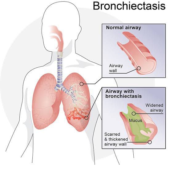 The most common symptom of bronchiectasis is a persistent cough that brings up a large amount of phlegm on a daily basis. The phlegm can be clear, pale yellow or yellow-greenish in colour. Other people may only occasionally cough up small amounts of phlegm, or none at all. Other symptoms may include: shortness of breath wheezing coughing up blood or blood-stained phlegm chest pain joint pain clubbing of the fingertips – the tissue beneath the nail thickens and the fingertips become rounded and bulbous