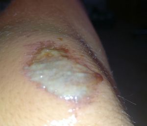 This surface wound was good disinfected, but then patient came to us, while pains and pus started to appear, any suggestions?