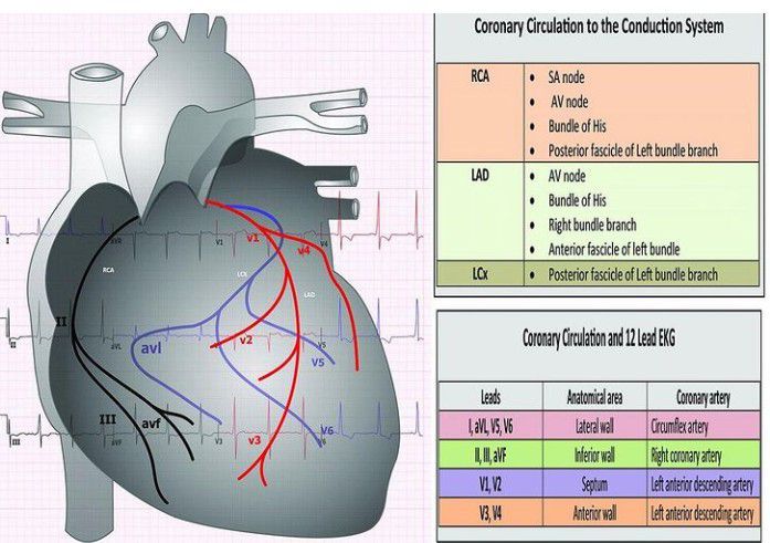 Coronary circulation and 12 lead ECG system is shown here.