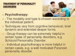 Psychotherapy, also called talk therapy, is the main way to treat personality disorders.
