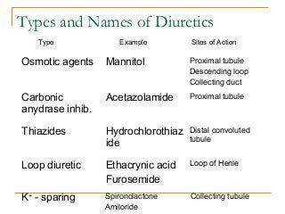 Each type of diuretic affects a different part of your kidneys. Some pills combine more than one type of diuretic or combine a diuretic with another blood pressure medication