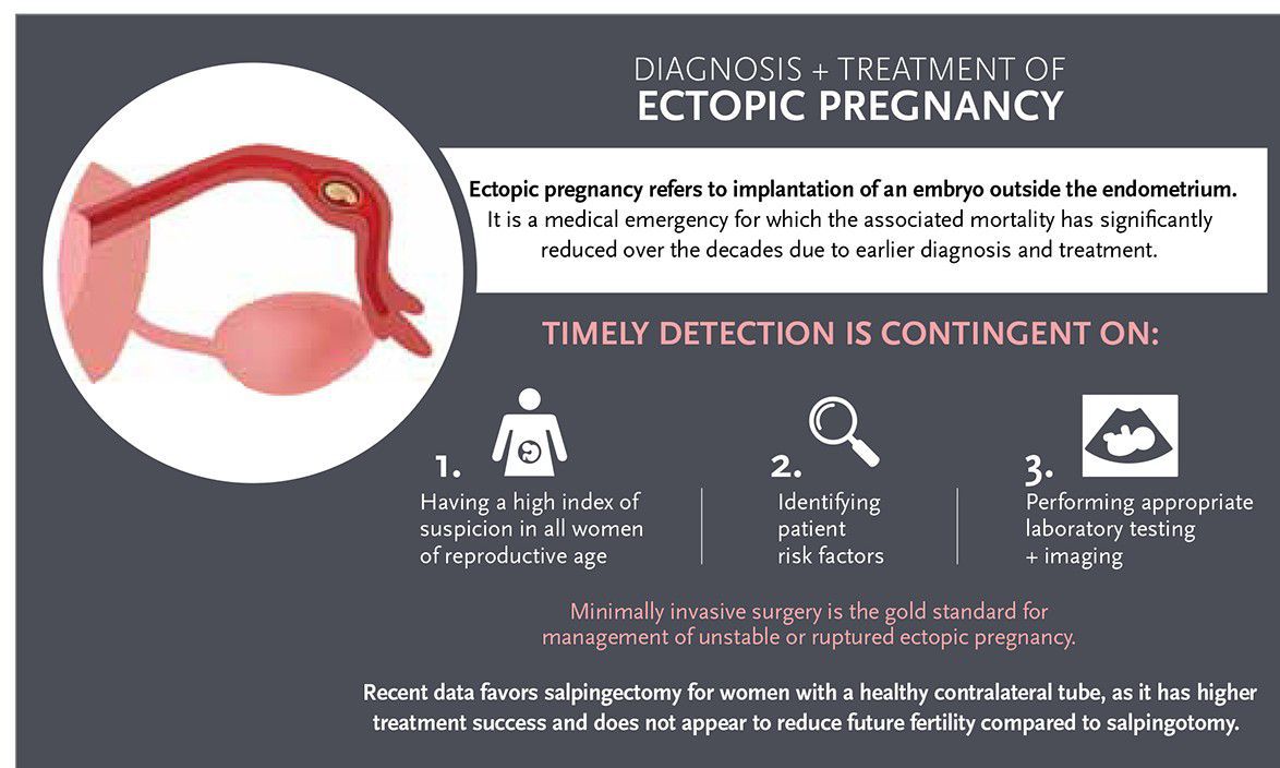 The main treatment options are: expectant management – your condition is carefully monitored to see whether treatment is necessary. medicine – a medicine called methotrexate is used to stop the pregnancy growing. surgery – surgery is used to remove the pregnancy, usually along with the affected fallopian tube.