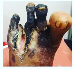 Gangrene associated to diabetes mellitus